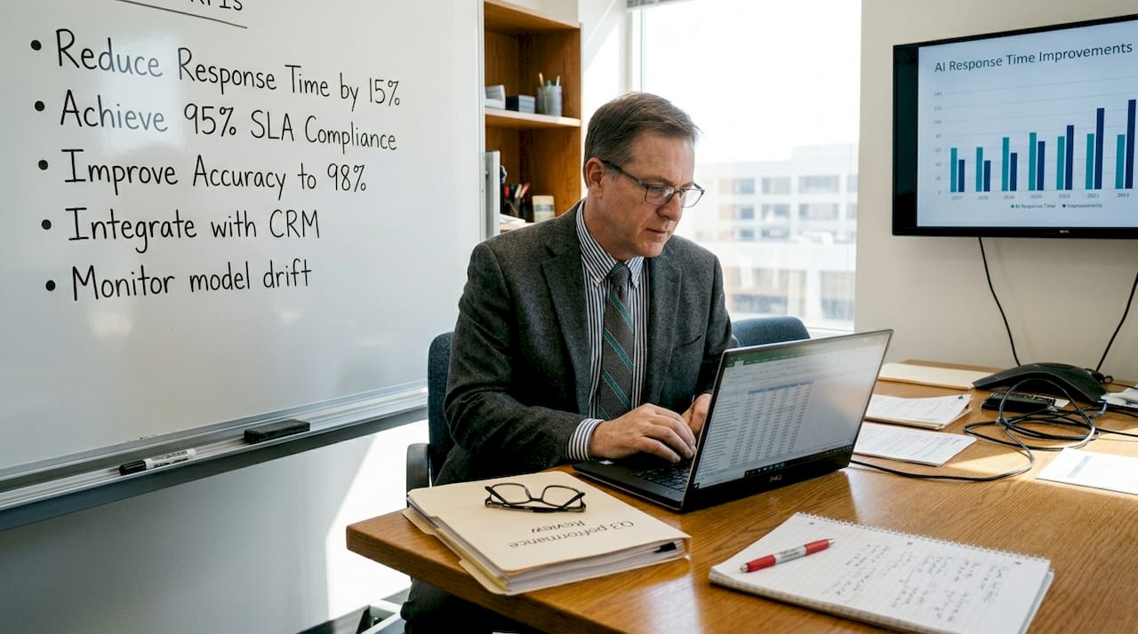 Once you have specific objectives, map each one to a measurable KPI. Think response times, conversion rates, cost per acquisition, or staff hours saved per week. These become your benchmarks for success and your early warning system if something is not working.